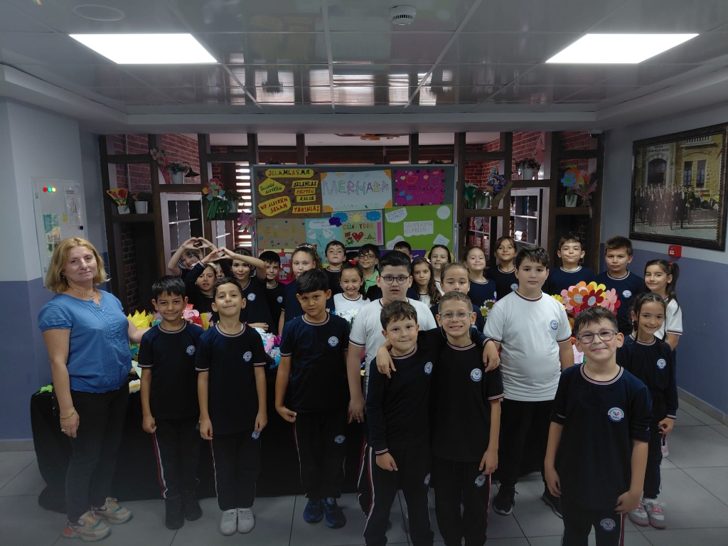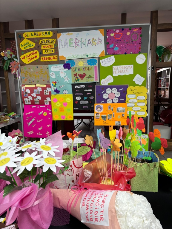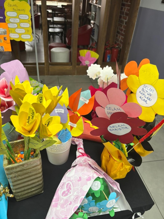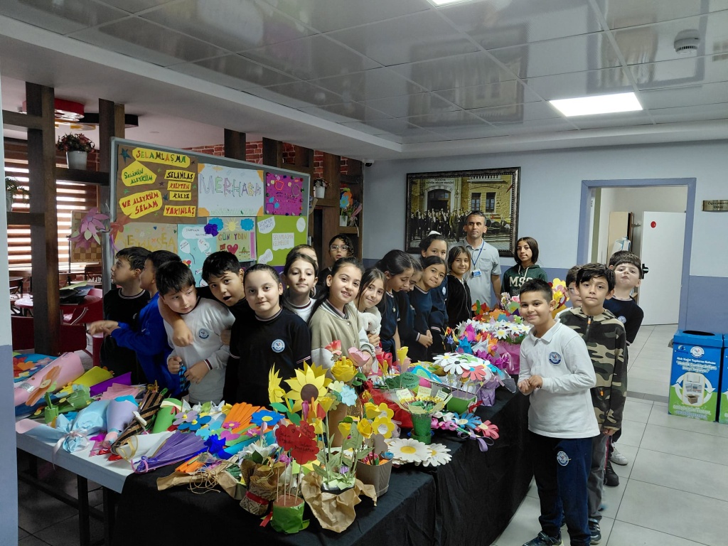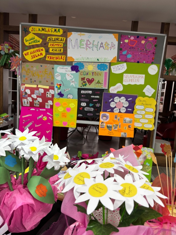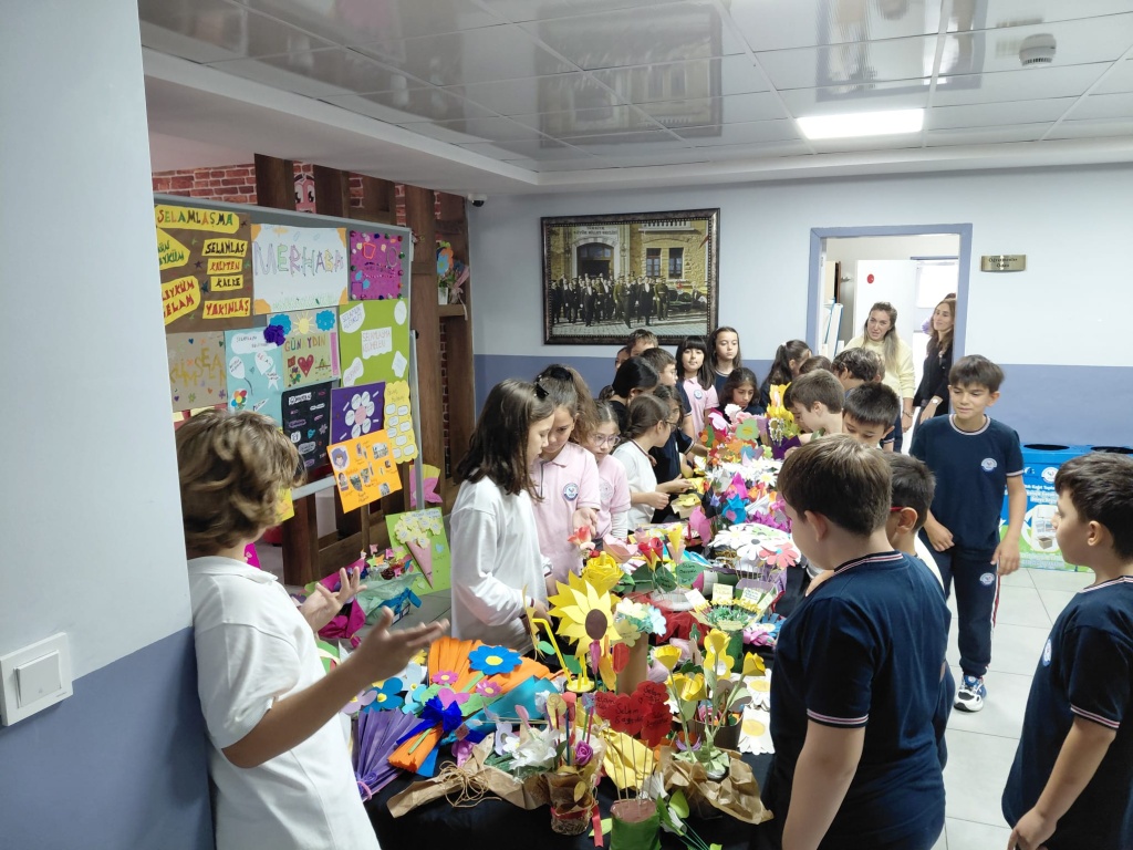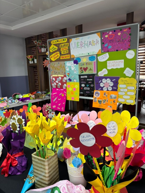 Din Kültürü ve Ahlak Bilgisi öğretmenimiz Merve Nur AKCAKAYA, 4.sınıf öğrencilerimiz ile birlikte ''Selam Buketleri'' sergisi gerçekleştirdi. Öğrencilerimiz yapılan sergi ile selamın anlam ve önemini öğrendiler.Selamın yaygınlaşmasının, insanlar arasındaki sevgi ve dostluk bağlarını güçlendirmedeki etkisini kavramış oldular.Okulumuzdaki sınıflarımız bu güzel sergiyi öğretmenleri eşliğinde büyük bir ilgiyle gezdiler.